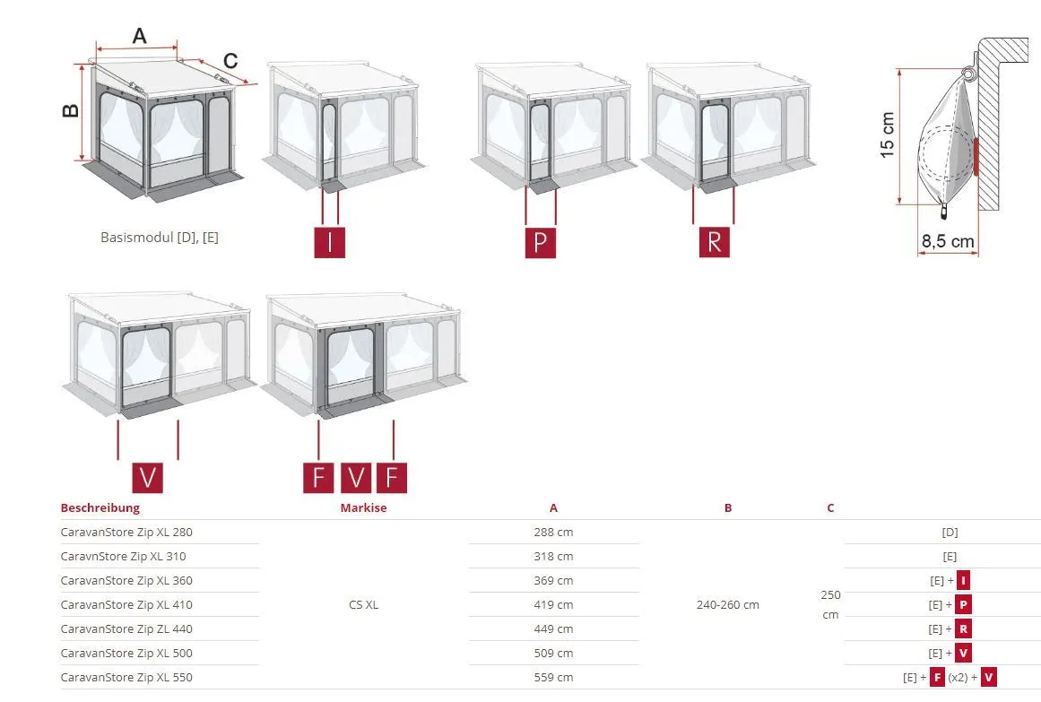* Anvendes med komplet Fiamma Caravanstore ZIP XL 310 cm. telt