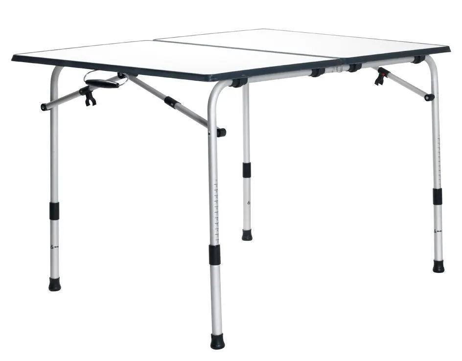 Campingbord “Wecamp” 120 x 80 cm med grå kant og justerbare ben.