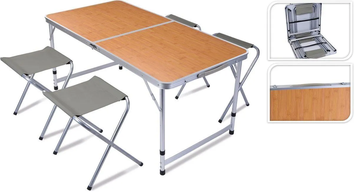 Stolene kan foldes sammen og opbevares inde i bordet.